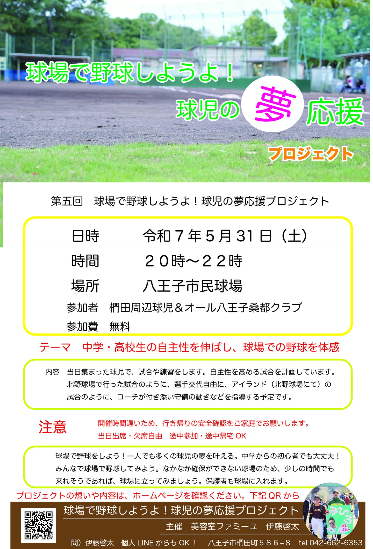 HOME | 活動報告31回まで | 活動報告 第五回開催 球場で野球をしようよ! 野球がしたい!球児の夢応援プロジェクト 夢の球場に立った 球児の人数 第五回開催まで 82人 第1~20回活動報告 bottom_arrow 球児の夢!応援 活動報告 球児の夢応援!第1回 球児の夢応援!第2回 球児の夢応援!第3回 球児の夢応援!第4回 球児の夢応援!第5回 球児の夢!応援 活動報告 球児の夢応援!第6回 球児の夢応援!第7回 球児の夢応援!第8回 球児の夢応援!第9回 球児の夢応援!第10回 球児の夢!応援 活動報告 球児の夢応援!第11回 球児の夢応援!第12回 球児の夢応援!第13回 球児の夢応援!第14回 球児の夢応援!第15回 球児の夢!応援 活動報告 球児の夢応援!第16回 球児の夢応援!第17回 球児の夢応援!第18回 球児の夢応援!第19回 球児の夢応援!第20回 第20回~活動報告 bottom_arrow 球児の夢!応援 活動報告 球児の夢応援!第21回 球児の夢応援!第22回 球児の夢応援!第23回 球児の夢応援!第24回 球児の夢応援!第25回 球児の夢!応援 活動報告 球児の夢応援!第26回 球児の夢応援!第27回 球児の夢応援!第28回 球児の夢応援!第29回 球児の夢応援!第30回 球児の夢応援!R7・11月 球場で野球やろうよ!野球がしたい!球児の夢応援プロジェクト 第五回日時 令和7年5月31日(土)場所 八王子市民球場(スリーボンドスタジアム)参加者 0名 多くの方々のご参加希望がありましたが 雨天のため中止になりました